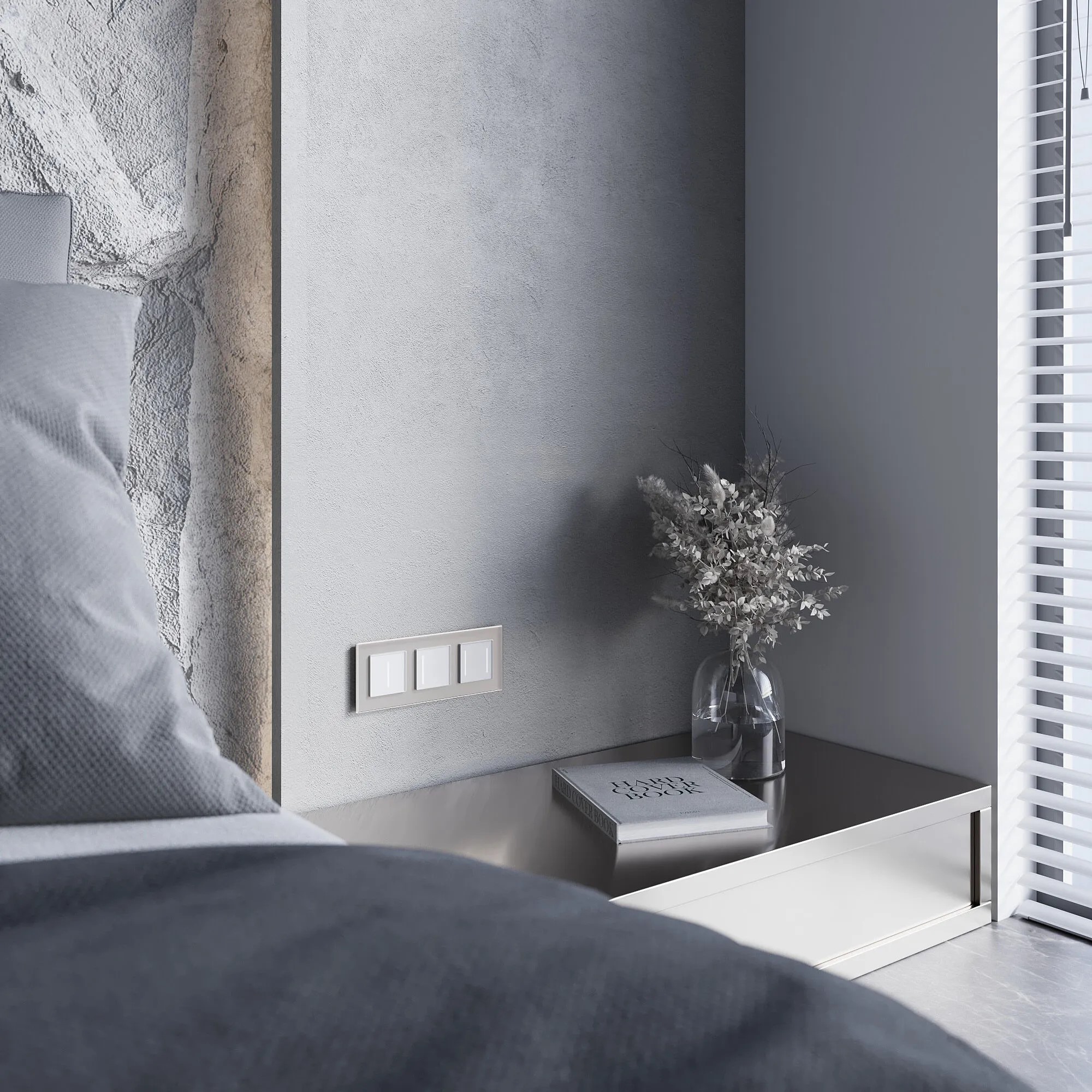 • Механизмы в цвете «Дымчатый матовый» — новый оттенок, вдохновлённый палитрой Old Money, но отлично вписывающийся в нейтральную скандинавскую палитру.