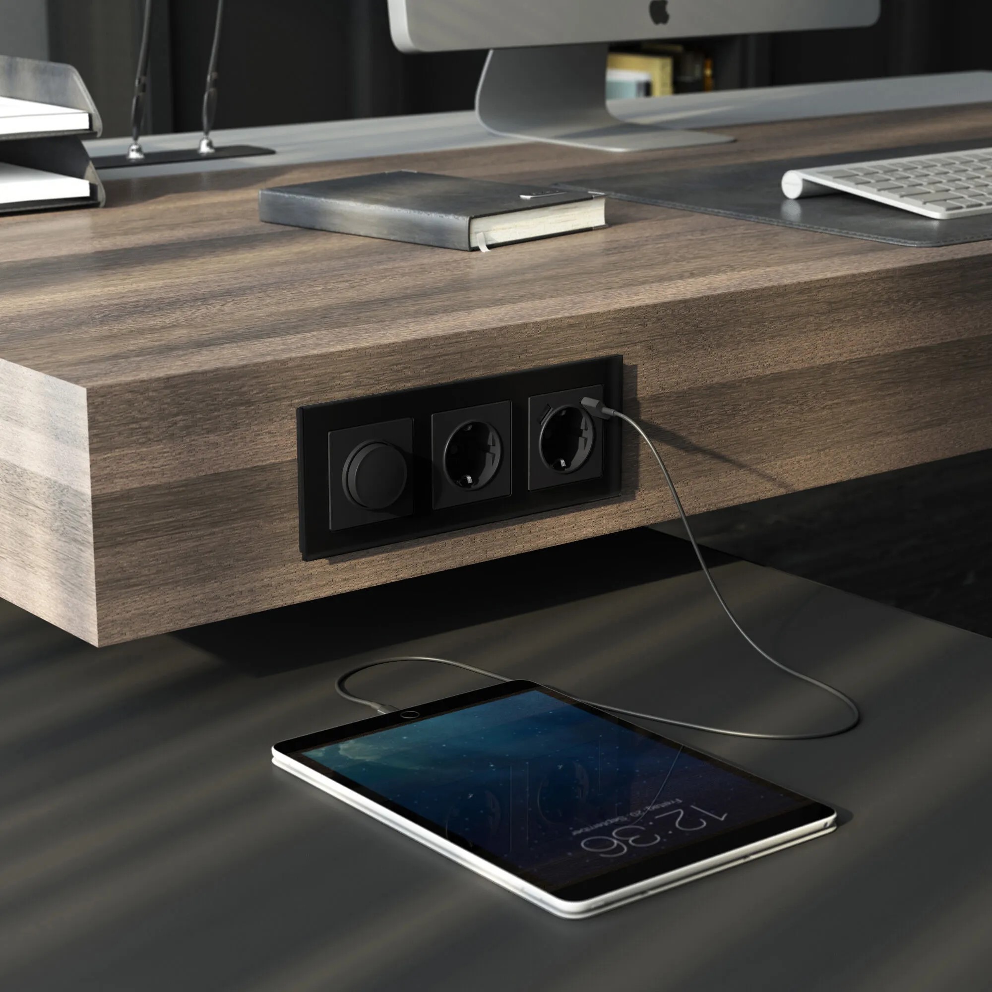 • Матовые розетки с USB Type-A и Type-C — для зарядки гаджетов без видимых адаптеров.